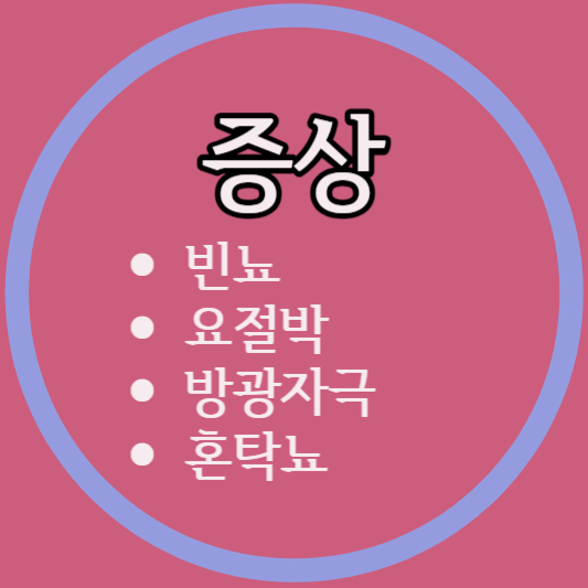 - 요절박 : 강하고 갑작스러운 요의를 느끼면서 소변이 마려우면 참을 수 없는 증상