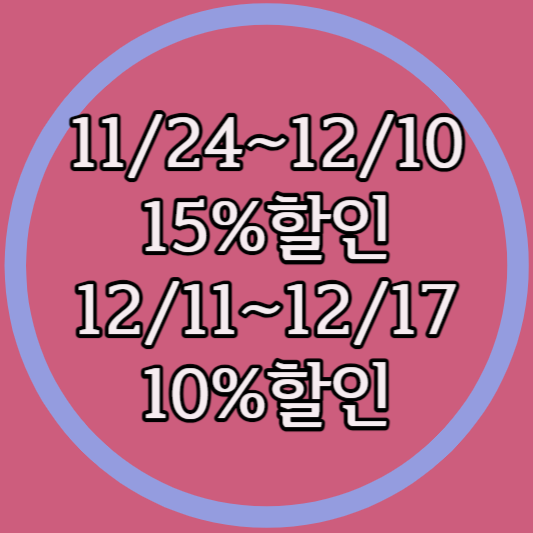 11.24(금) ~ 12.10(일) 기간에 예약한다면 15% 할인이 들어가고