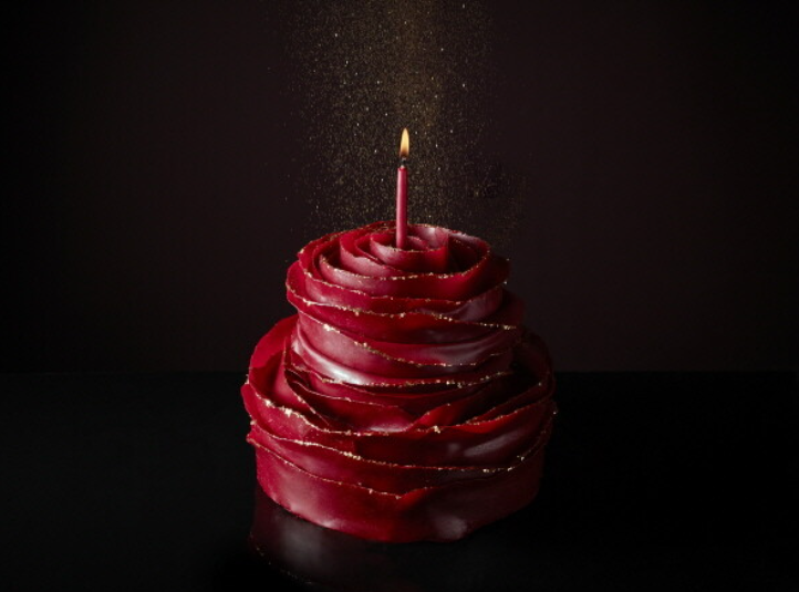 맛 : 금박 장식의 화려한 물결 모양은 최고급 발로나 초콜릿으로, 케이크 안은 라즈베리 시트에 앙글레이즈와 마스카포네 크림의 조화